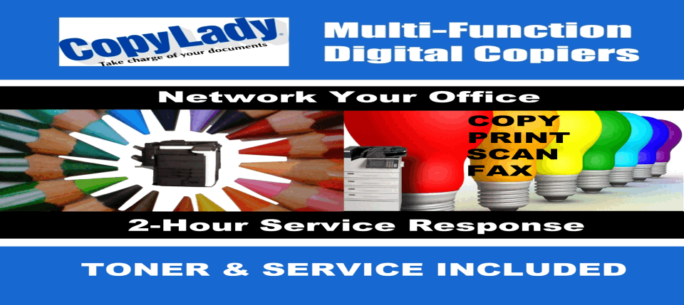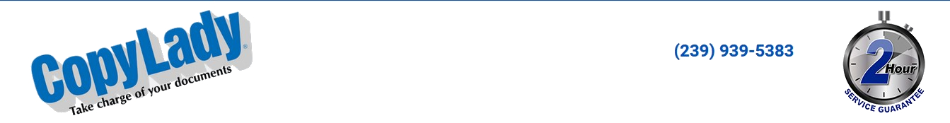CopyLady: Proudly serving Naples, Bonita Springs, and SouthWest Florida since 2002!It's time to get a CopyLady copier......or two.....or three.....or as many as you need!At CopyLady, We carry Multifunction Printers from major brands such as Epson, Kyocera, and KIP.We also service ALL BRANDS of printer and copier If it prints, or scans, we'll fix it!We can also fix ALL TYPES: From industrial grade printing presses, down to your basic desktop printer! Need a toner, ink or other component for an existing machine? Can't find it anywhere else? We can help you!Need help? Trouble with the copier? Give us a call! We'll get you back up and running before you know it!With the CopyLady 2-HOUR RESPONSE GUARANTEE!, You'll NEVER be kept waiting for service!When you call us, we ALWAYS answer your call, and within 2 hours of your call, we'll have a highly trained technician at your office!Our team of highly trained copier technicians are always ready to help when the call comes in, You can also get quick assistance fromour help desk! Do you have a question about something on your copier or printer? Need some assistance with a feature? Just give CopyLady a call,and our highly knowledgeable help desk technicians can assist you within minutes!I challenge you to find anyone that can beat CopyLady. Wait.....You can't? Well that's because CopyLady is #1 in the industry!Dude, I need toner! I better call CopyLady......Wait a second, You already knew I needed a toner? YOU'RE A WIZARD!Your CopyLady Service Agreement comes jam packed full of awesome! This level of awesome includes all the toner and ink you'll ever need!With our amazing Toner Replenishment System (TRS), You'll never have to call us for toners or inks ever!When we see that you need a toner or ink, We bring it out to you! No need to dedicate storage space for toners or inks. You won't even KNOW you need it until we bring you one, and it costs you NOTHING! It is included in your service agreement!Wizard? Maybe. We're just the top dog in the industry when it comes to service and supplies!GO BIG with a CopyLady plotter, or go home!Blueprints? Posters? Banners? Your favorite pin-up girl? You can't go wrong with a high quality plotter from CopyLady!With sizes up to 44 inches, There's no limit to what you can create! Razor sharp Black & White, or vibrantly luscious colors, Our plotters can do it all!Are you still reading this page? What are you waiting for?! Call CopyLady at 239-939-5383 TODAY!You got the business, we got the copier your business needs, and the best service your business needs!Call CopyLady Today at 239-939-5383Serving Naples, Bonita Springs, and all of Southwest Florida.